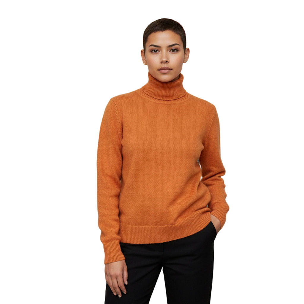 Product Description and Fit: This elegant red turtleneck sweater features a classic design with long sleeves and a high neckline. The garment fits close to the body, offering a sleek and stylish appearance suitable for various occasions.